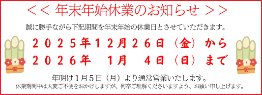 [ 12月の休業日のお知らせ ]